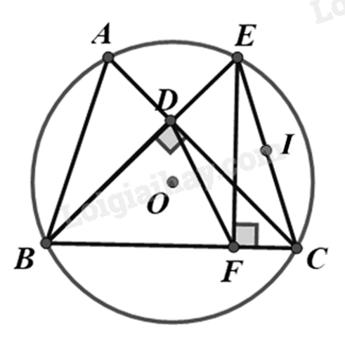 Cho tam giác nhọn ABC (AB < AC) nội tiếp đường tròn (O), đường cao BD của tam giác cắt (O) tại điểm thứ hai là \(E\)  (\(E\)  khác \(B\)), vẽ EF vuông góc với BC (\(F\) thuộc BC).