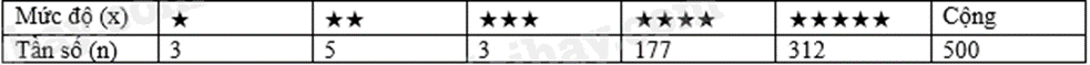 Một cửa hàng khảo sát mức độ hài lòng của khách hàng thông qua việc khách hàng đánh giá từ ★ đến ★★★★★. Kết quả được thống kê bởi bảng số liệu sau: