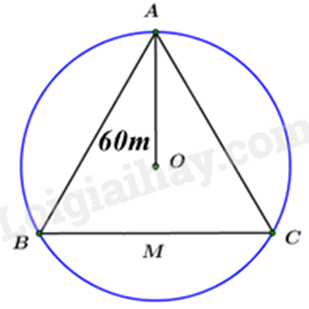 Ta có bán kính đường tròn ngoại tiếp tam giác đều là 60m nên \(R = \frac{{a\sqrt 3 }}{3}\), suy ra \(60 = \frac{{a\sqrt 3 }}{3}\)