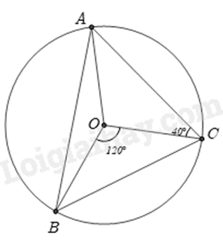 Cho tam giác ABC nội tiếp đường tròn (O). Biết \(\widehat {BOC} = 120^\circ \) và \(\widehat {OCA} = 40^\circ \). Tính số đo góc BAO.