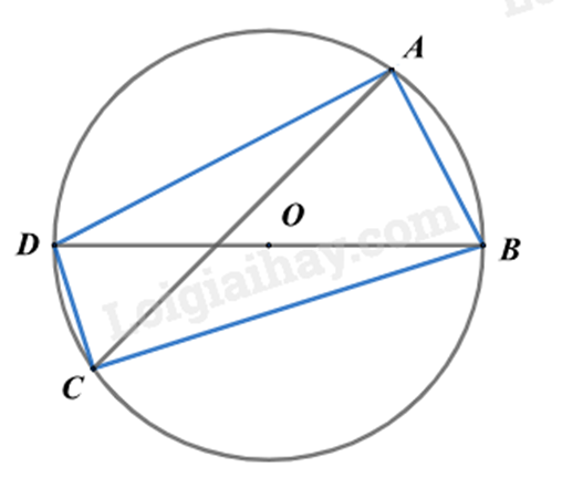 Xét tam giác ABD nội tiếp đường tròn (O) (vì ABCD là tứ giác nội tiếp) có \(\widehat A = 90^\circ \) (góc nội tiếp chắn nửa đường tròn) nên tam giác ABD vuông tại A.