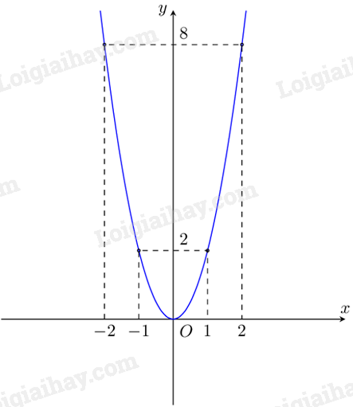 Thay \(y = 4\) vào hàm số \(y = 8{x^2}\) ta được \(4 = 8{x^2}\) suy ra \({x^2} = \frac{1}{2}\) suy ra \(x = \frac{{\sqrt 2 }}{2}\) hoặc \(x =  - \frac{{\sqrt 2 }}{2}\)