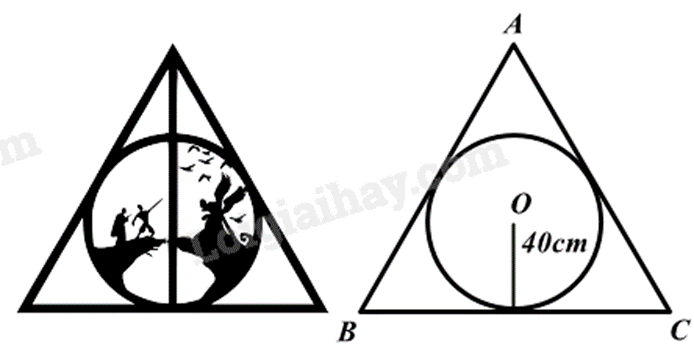 Vì khung ảnh hình tròn tiếp xúc với các cạnh của tam giác đều nên ta có đường tròn nội tiếp tam giác đều.