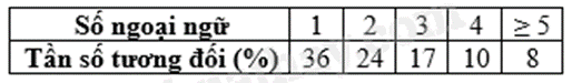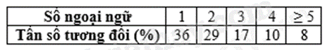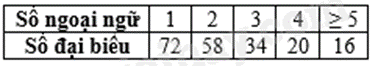 Tại một hội nghị khoa học quốc tế năm 2022, ban tổ chức khảo sát số lượng ngôn ngữ mà mỗi đại biểu có thể sử dụng. Kết quả thu được như sau: