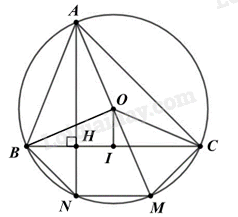 d) Gọi N là giao điểm của AH với đường tròn \(\left( O \right)\). Tứ giác BCMN là hình bình hành.
