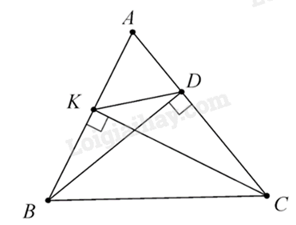 Xét tam giác BKC và tam giác BDC có \(\widehat {BKC} = \widehat {BDC} = 90^\circ \) tam giác BKC và tam giác BDC nội tiếp đường tròn đường kính BC.