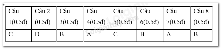 Câu 4: Bài thơ Ngôn chí 10 đã thể hiện: A. Tình yêu thiên nhiên say đắm, nồng nàn của bậc hiền nhân B. Sự gắn bó với làng quê của một nông dân hồn hậu, chất phác C. Cách thưởng thức thiên nhiên của một nghệ sĩ D. Thiên nhiên đầy ắp chất nhạc, chất họa |