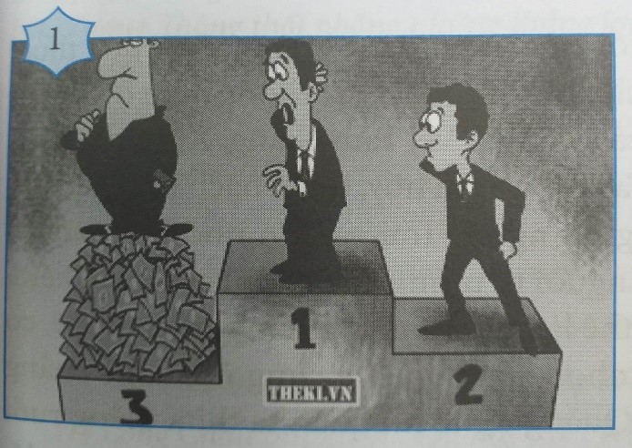 + Bức họa: dùng hình ảnh, hình khối minh họa cụ thể sinh động hành trình, thái độ con người trước danh lợi; thế đứng của con người khi có danh lợi