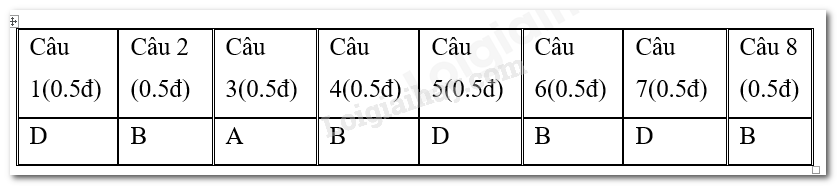 Câu 4: Dòng nào nói lên các thủ pháp nghệ thuật trong luận điểm 1? A. Đối lập, so sánh, ẩn dụ B. Ẩn dụ, so sánh C. Hoán dụ, so sánh D. Nhân hóa, so sánh |