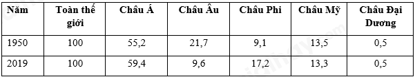 a. Hãy chọn dạng biểu đồ thích hợp nhất để thể hiện sự thay đổi cơ cấu phân bố dân cư giữa các châu lục trên thế giới.