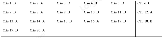 Phần trắc nghiệm (5 điểm) Chọn câu trả lời đúng trong mỗi câu sau: