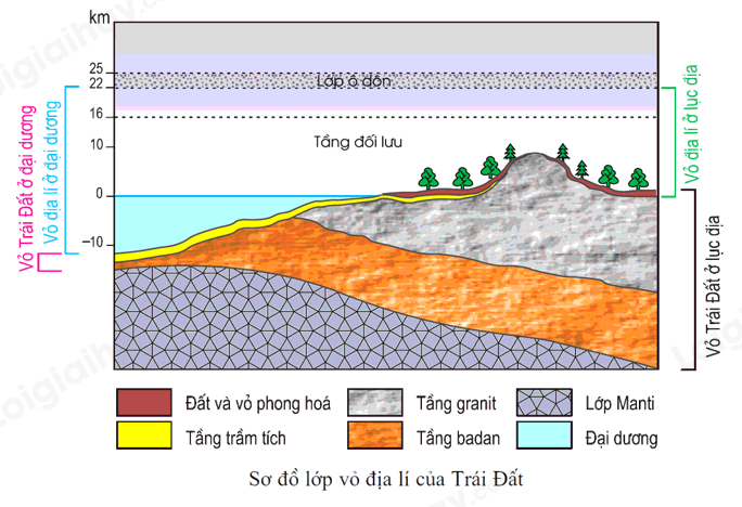 Lớp vỏ Trái Đất ở đại dương gồm hai tầng chính: tầng trầm tích và tầng badan. Trong đó: