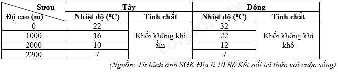 Dựa vào bảng số liệu trên và kiến thức đã học, hãy cho biết sự phân hoá khí hậu theo địa hình là do loại gió nào gây ra? Giải thích sự hình thành loại gió đó ở 2 bên sườn núi.