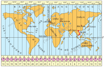 Quan sát hình ảnh xác định múi giờ của Việt Nam.