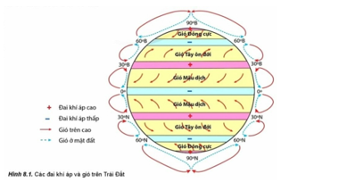 Các vành đai áp cao và áp thấp phân bố xen kẽ và đối xứng qua đai áp thấp Xích Đạo, trong đó: