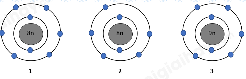 Các nguyên tử 1, 3 có cùng số proton => cùng 1 nguyên tố hóa học, có số N khác nhau => là đồng vị của nhau