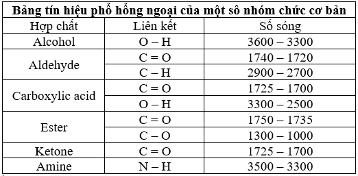 Dựa vào bảng tín hiệu hồng ngoại của một số nhóm chức cơ bản