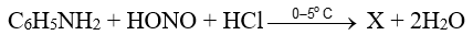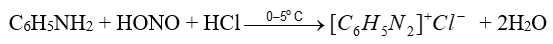 Aniline (C6H5NH2) khi phản ứng với HNO2 ở nhiệt độ thấp (0 – 5oC) sinh ra muối diazonium theo phản ứng sau: