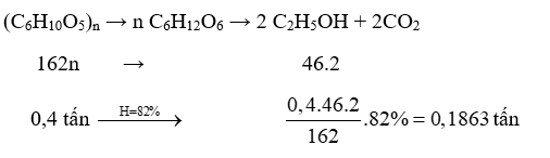 Khối lượng tinh bột trong 1 tấn sắn khô là: 1.40% = 0,4 tấn