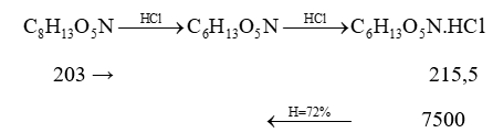 m C8H13O5N = \(\frac{{7500.213}}{{215,5}}:72\% = 9812,45g\)
