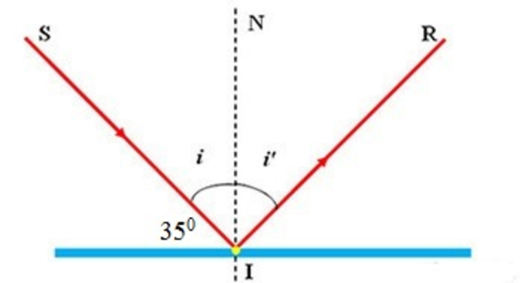 Câu 11: Một tia sáng chiếu tới SI đến gương phẳng và hợp với mặt phẳng một góc 35o như hình vẽ. Kết luận nào sau đây đúng?