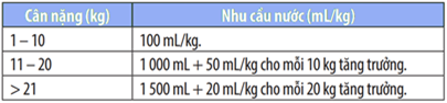 Câu 30: Nhu cầu nước mỗi ngày của trẻ em theo cân nặng theo khuyến nghị của Viện dinh dưỡng vào năm 2012 được mô tả như trong bảng sau: