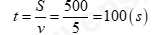 Thời gian để vật chuyển động hết quãng đường 0,5km là: