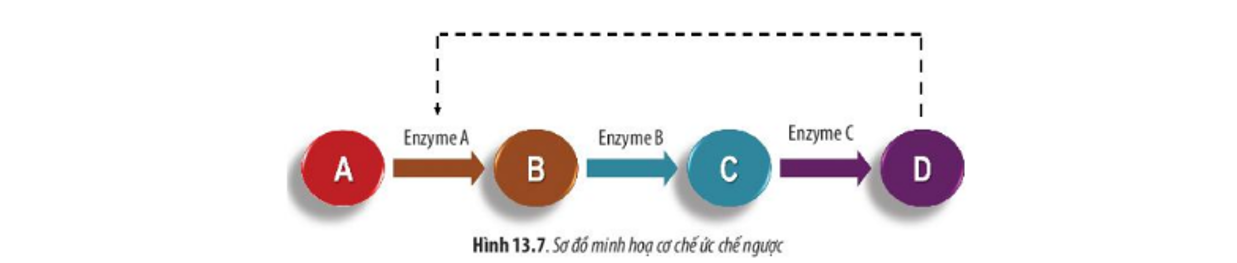 a) Ức chế ngược là kiểu điều hòa trong đó sản phẩm của con đường chuyển hóa quay lại tác động như một chất ức chế làm bất hoạt enzyme xúc tác cho phản ứng ở đầu con đường chuyển hóa.