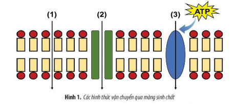 Hình thức (1) và (2) không tiêu tốn năng lượng, hình thức (1) vận chuyển các chất không phân cực, còn hình thức (2) vận chuyển các chất có phân cực. Hình thức (3) cần tiêu tốn năng lượng và sử dụng protein vận chuyển.