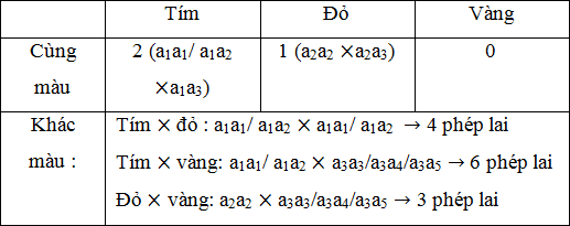 Từ phép lai 1 ta suy ra được: tím > đỏ > vàng