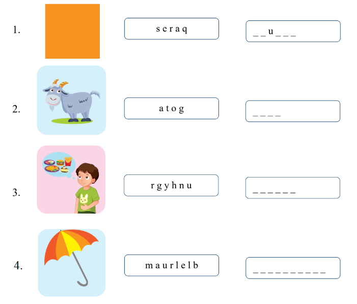 Read and draw line. Look and circle. Look, read and put a tick (√) or a cross (X). Reorder the letters. Reorder the words to make correct sentences.