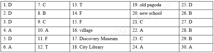 A. LANGUAGE FOCUS I. Circle the word whose underlined part is pronounced differently from the others’. II. Circle the word whose stress pattern is pronounced differently from the others’. III. Choose the best option to complete the sentences by circle the letter A, B, C or D. B. LISTENING I. You are going to hear about a very special friend. Listen and decide whether the following statements are true (T) or false (F). II. Listen to a conversation between Tom and Ha about their neighbourhood. Fil