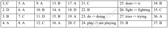 I. Choose the words whose underlined part is pronounced differently from that of the others in each group. II. Find the word that differs from the other three in the position of primary stress. III. Choose the word/ phrase (A, B, C or D) that best suits the blank in each sentence. IV. There is a mistake in each sentence. Find and correct it. V. Read the article and write the names of the dishes next to the pictures. VI. Read the article and choose the A, B, C for each question.