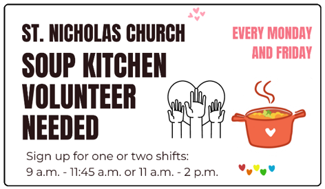 D. Volunteers will work on the weekends from 11.45 a.m. to 2 p.m.