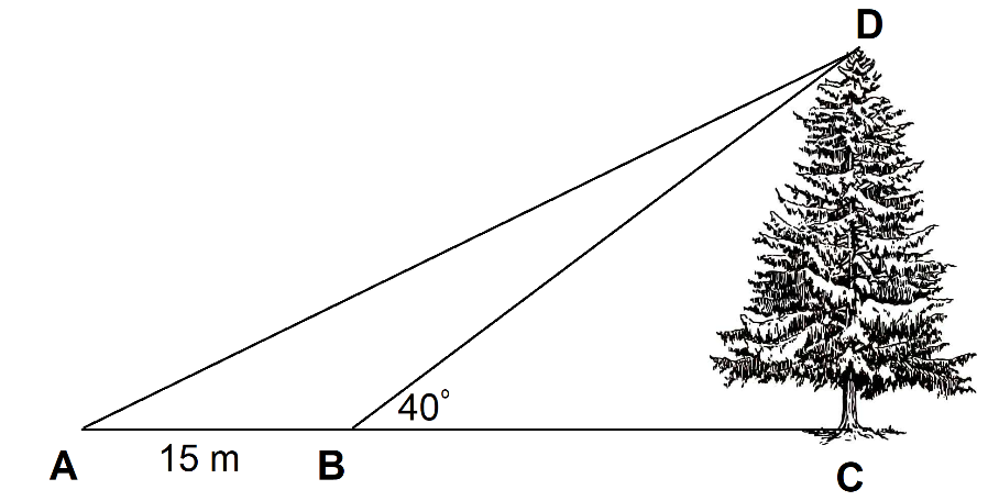 Câu 4: Tính chiều cao CD của cây trong hình vẽ dưới đây: