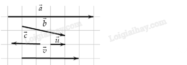 Cho các vecto \(\overrightarrow a ,\overrightarrow b ,\overrightarrow c ,\overrightarrow u \) và \(\overrightarrow v \) như trong hình dưới. Hỏi có bao nhiêu vecto cùng hướng với \(\overrightarrow u \)?