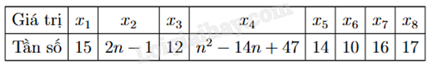 Khi đó \(\left\{ \begin{array}{l}2n - 1 = {n^2} - 14n + 47\\2n - 1 > 17\\{n^2} - 14n + 47 > 17\end{array} \right.\)\(\begin{array}{l}(1)\\(2)\\(3)\end{array}\)