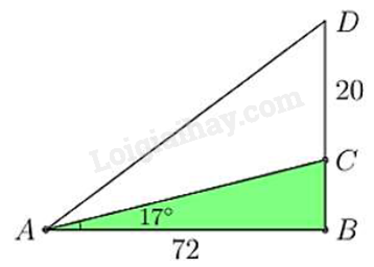 Một cột điện cao 20 m được dựng thẳng trên một triền dốc nghiêng hợp với phương ngang một góc \(17^o\), đáy cột nằm theo phương ngang với điểm cuối dốc. Người ta nối một dây cáp từ đỉnh cột điện đến cuối dốc. Tìm chiều dài của dây cáp biết rằng đoạn đường từ đáy cột đến cuối dốc bằng 72 m. (Kết quả làm tròn đến hàng phần mười).