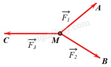 Cho ba lực \(\overrightarrow {{F_1}} = \overrightarrow {MA} \), \(\overrightarrow {{F_2}} = \overrightarrow {MB} \), \(\overrightarrow {{F_3}} = \overrightarrow {MC} \) cùng tác động vào một vật tại điểm M và vật đứng yên (tham khảo hình vẽ). Cho biết cường độ của \(\overrightarrow {{F_1}} \), \(\overrightarrow {{F_2}} \) đều bằng \(100\sqrt 2 \) N và góc \(\widehat {AMB} = {90^o}\). Tính cường độ của lực \(\overrightarrow {{F_3}} \) (đơn vị N).