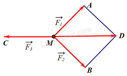 Theo bài ra ta có \(\left| {\overrightarrow {{F_3}} } \right| = \left| {\overrightarrow {{F_1}} + \overrightarrow {{F_2}} } \right| = \left| {\overrightarrow {MA} + \overrightarrow {MB} } \right| \)