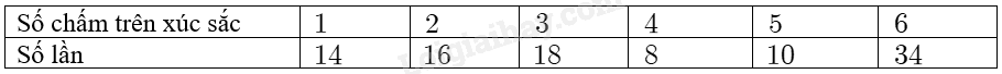 Nhóm bạn Dũng gieo ngẫu nhiên con xúc sắc 100 lần liên tiếp và ghi lại kết quả được thu lại bảng sau: