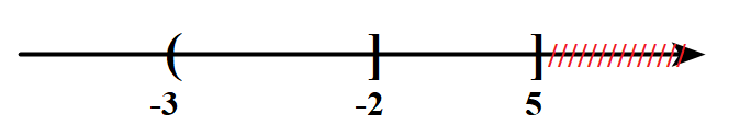 A. \(A \cap B = \left( { - 3; - 2} \right].\) B. \(A\backslash B = \left( { - \infty ; - 3} \right)\). C. \(A \cup B = \left( { - \infty ;5} \right]\). D. \(B\backslash A = \left( { - 2;5} \right]\).