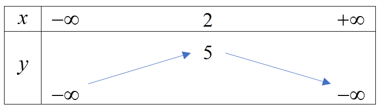 Parabol (P) có \(a = - 1 < 0\) và đỉnh là \(I\left( {2;5} \right)\)