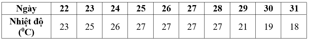Câu 2: Kết quả dự báo nhiệt độ cao nhất trong 10 ngày liên tiếp ở Nghệ An cuối tháng 01 năm 2022 được cho ở bảng sau:
