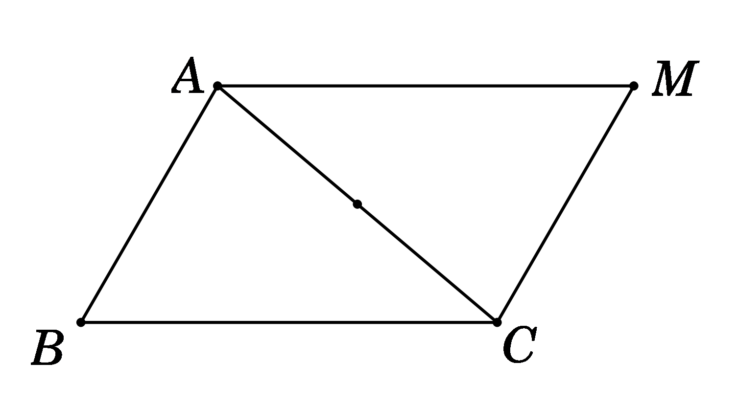 A. MABC là hình bình hành. B. \(\overrightarrow {AM} {\rm{ \;}} + \overrightarrow {AB} {\rm{ \;}} = \overrightarrow {AC} \)