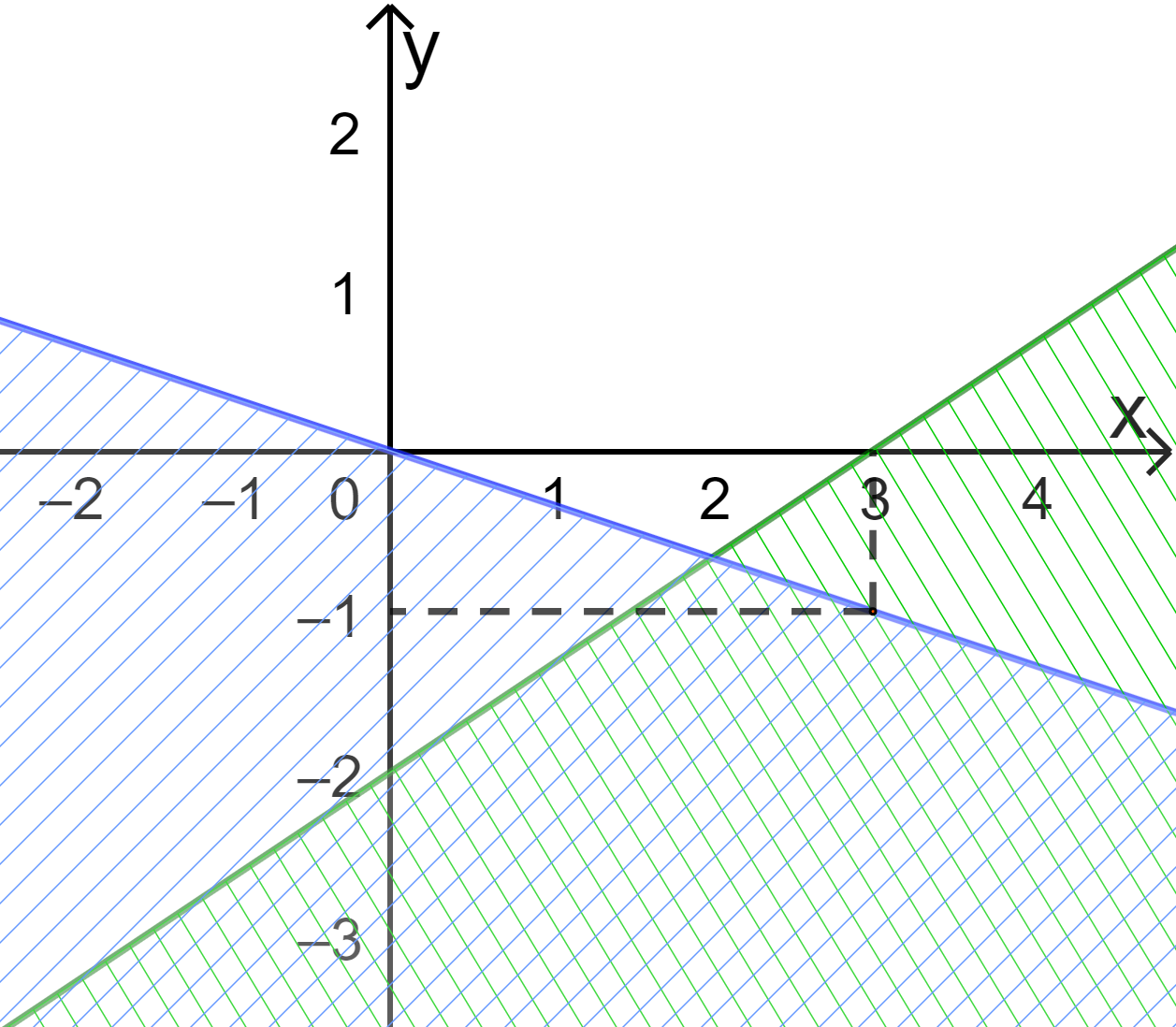 Câu 22: Phần không bị gạch trong hình vẽ dưới đây (không kể biên), biểu diễn tập nghiệm của hệ bất phương trình nào trong các hệ bất phương trình sau?