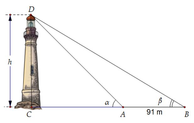 \( \Rightarrow CD = \sin {34^ \circ }26'.DB = \sin {34^ \circ }26'.\sin {107^ \circ }48'.\frac{{91}}{{\sin {{37}^ \circ }46'}} \approx 80\)