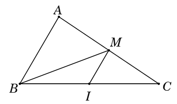 \( \Leftrightarrow \overrightarrow {AB} = 2\overrightarrow {MI} \) \( \Rightarrow MI//AB,MI = \frac{1}{2}AB\)