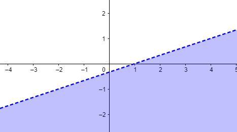 Câu 7: Hình dưới đây là hình biểu diễn của bất phương trình nào (miền nghiệm là miền màu xanh)?