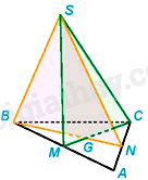 Vì \(G \in BN \Rightarrow G \in \left( {SBN} \right);G \in CM \Rightarrow G \in \left( {SCM} \right)\) nên G là điểm chung của hai mặt phẳng (SBN) và (SCM)